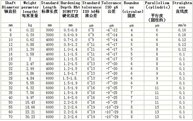| 淬硬磨光棒 |  | By requrest we can supply shaft diameters in no listed dimensions with special length and tolerances